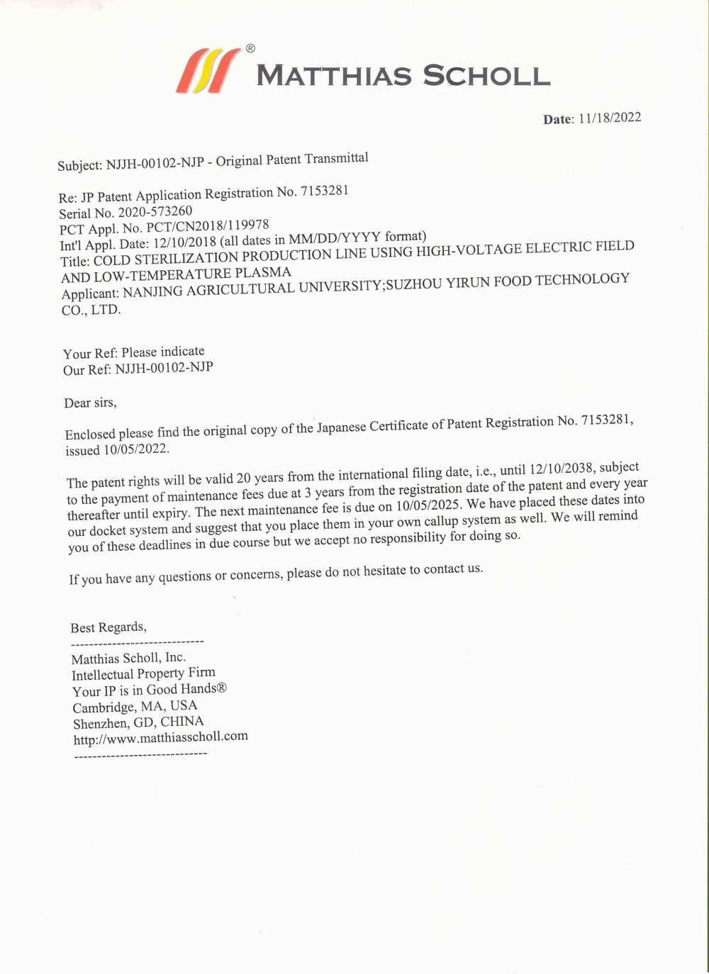 日本专利证书附件