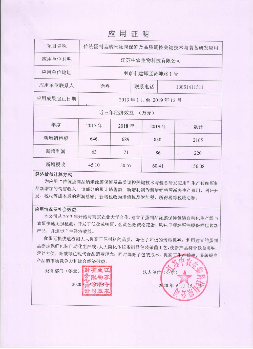 应用证明中农公司